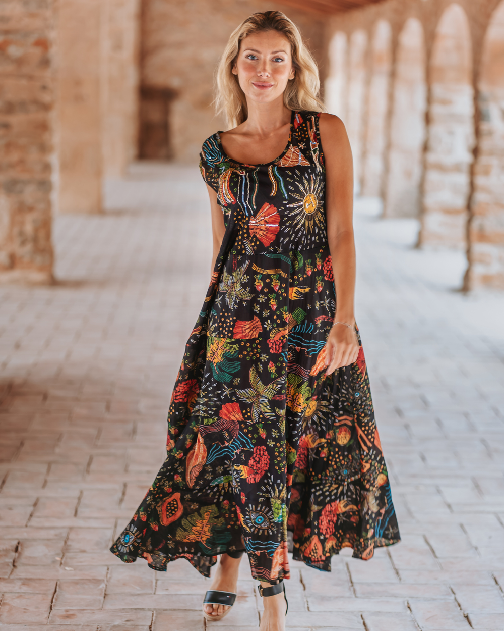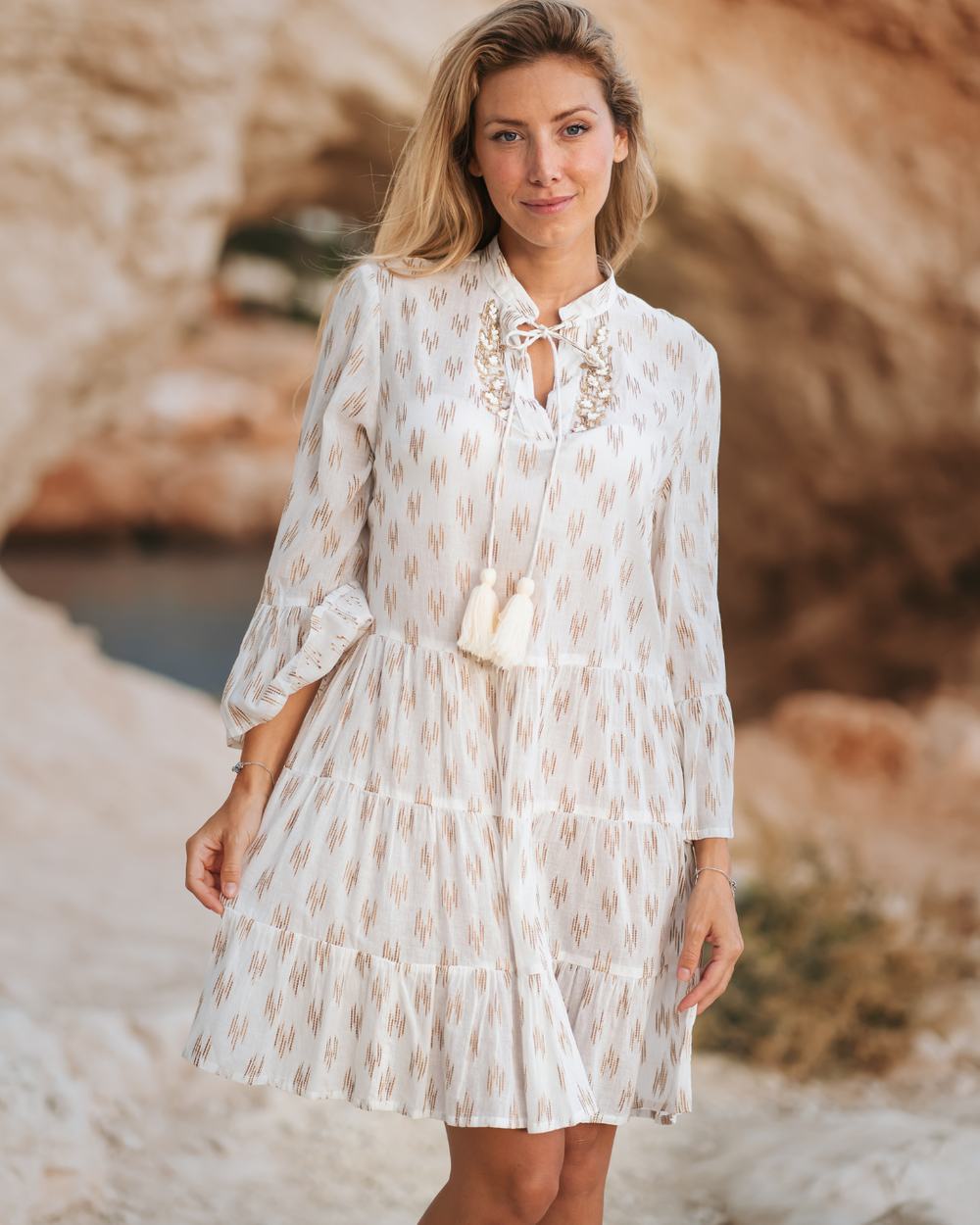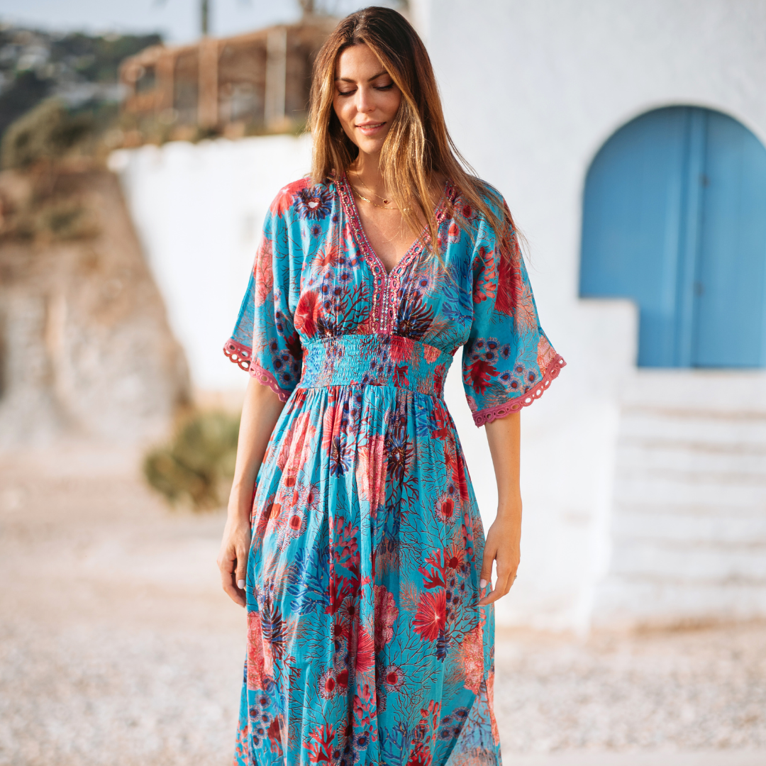 Each Isla Bonita piece reflects the relaxed sophistication of life by the sea. The brand is celebrated for its bohemian-chic aesthetic, blending soft natural fabrics with breezy silhouettes that move beautifully with the body. From flowing maxi dresses and embroidered kaftans to light cotton blouses and beach-ready pareos, the collection feels effortless yet refined.