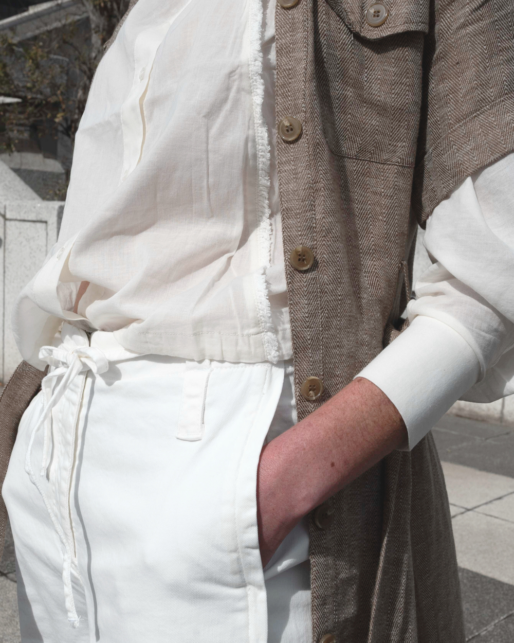 Attraversiamo - let’s cross over. Seasonal transition calls for light layers and perhaps a little playfulness in your styling. A featherlight blouse, a dreamy drape and a trouser with just a hint of detail might meet the brief.