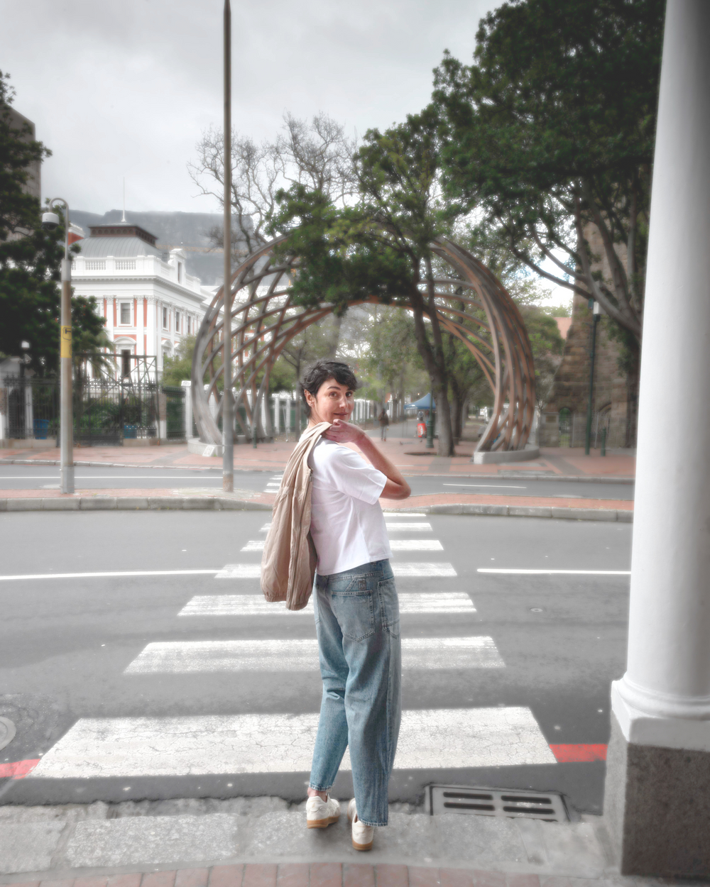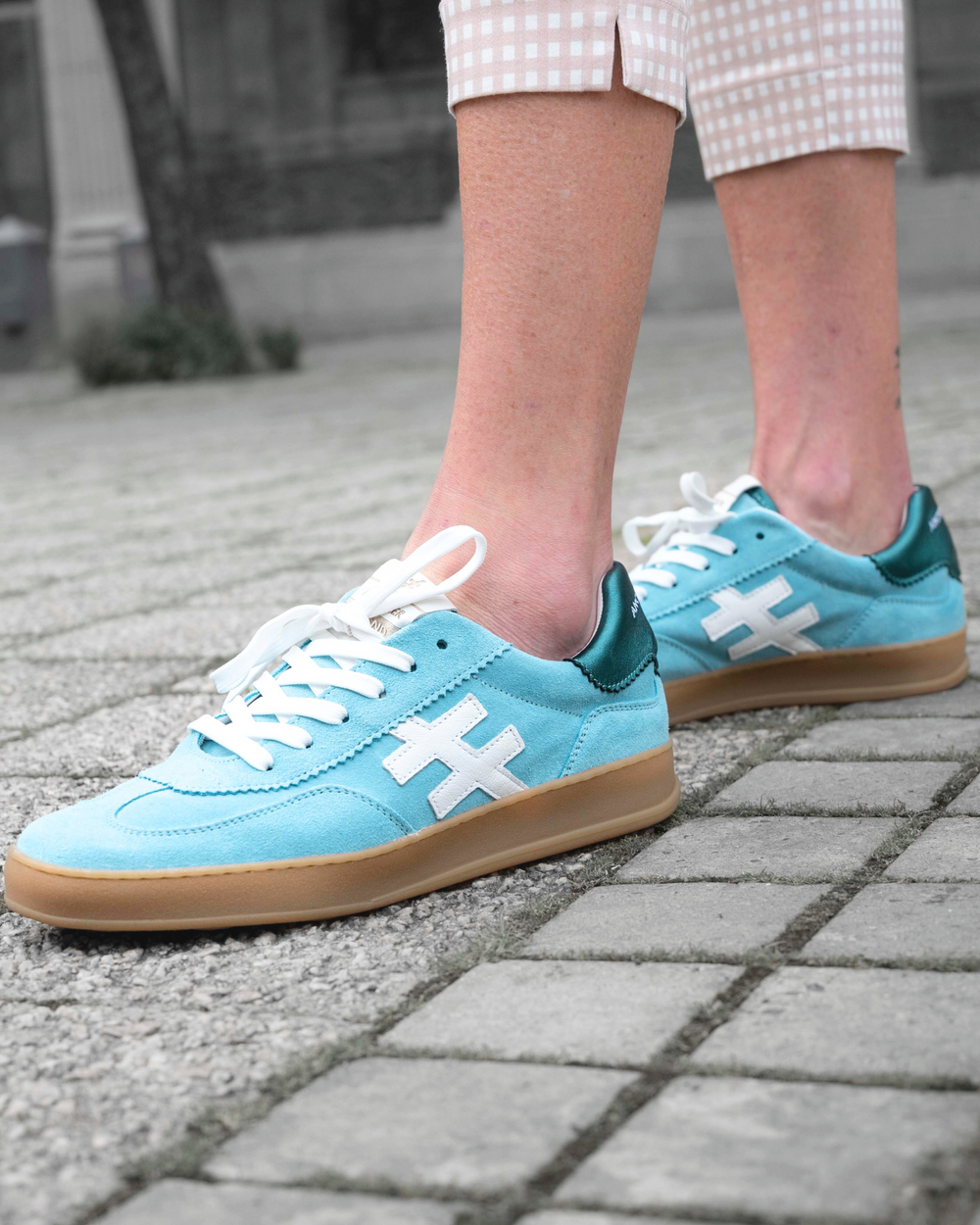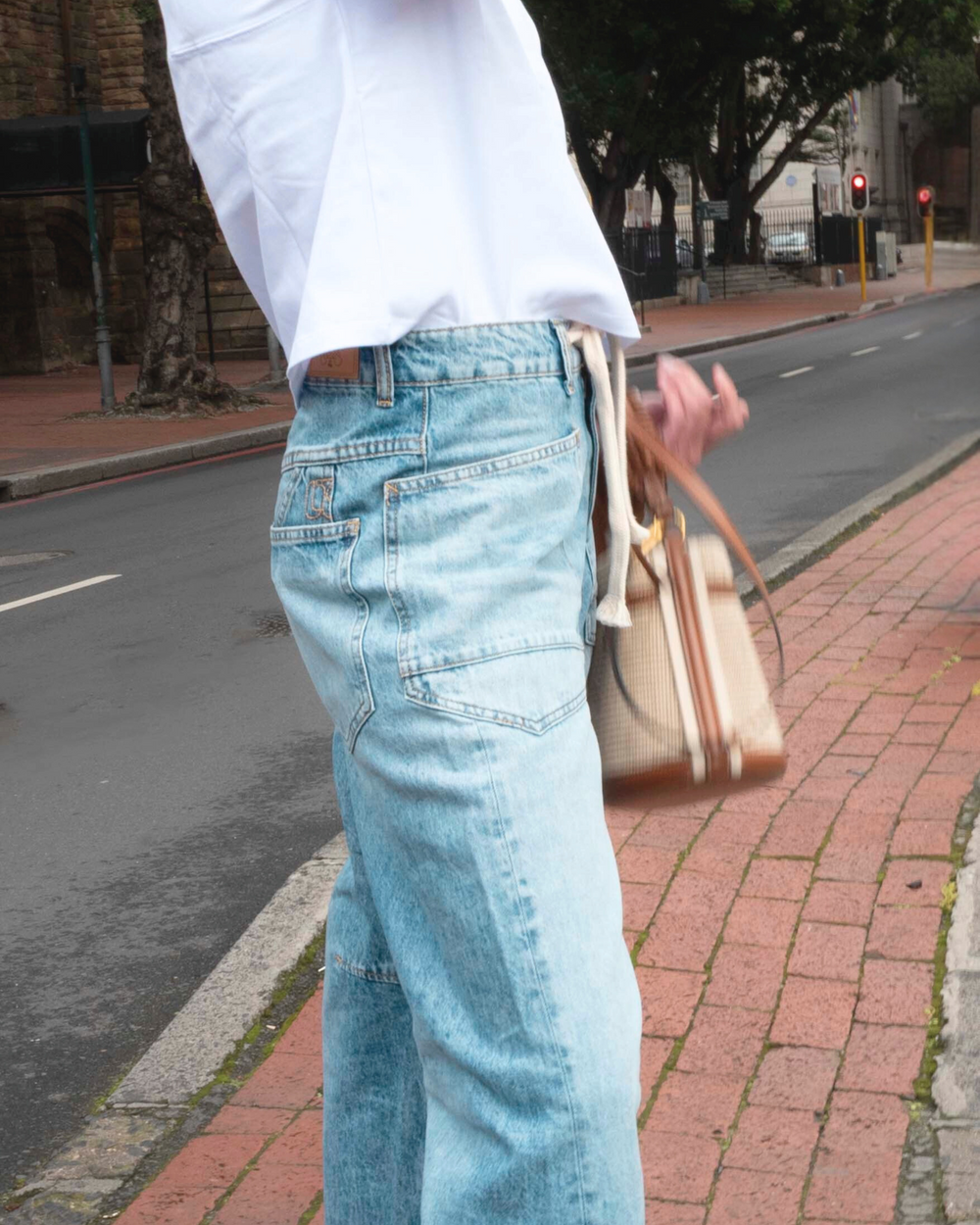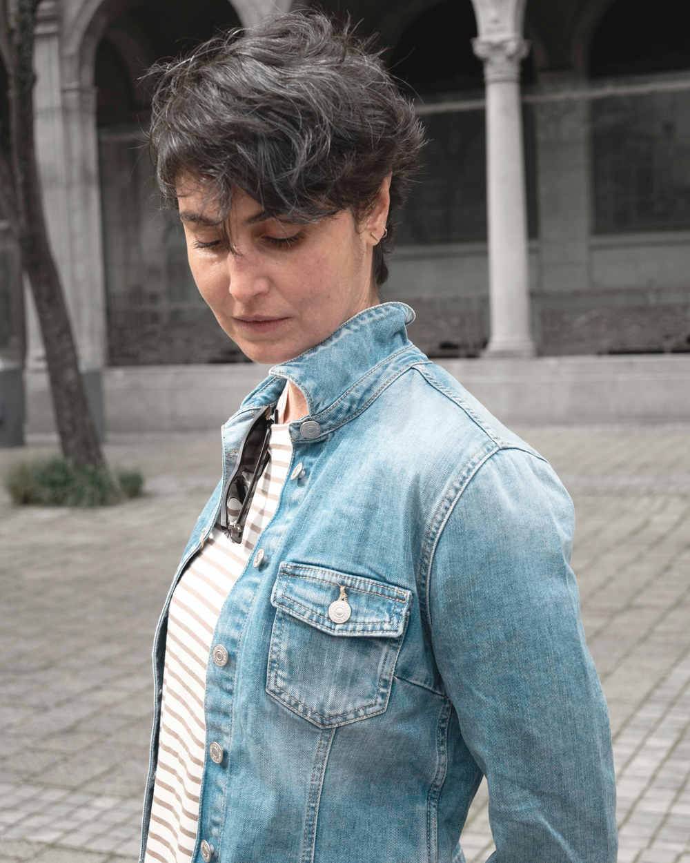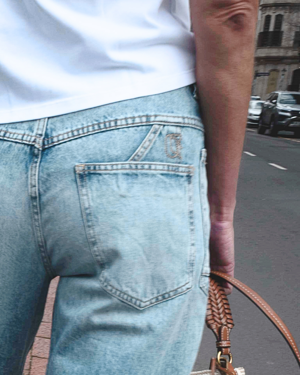 Attraversiamo - let’s cross over. Sky blue for spring and Y2K-inspired capris reimagined for the now with a subtle pairing of stripes and squares, and a staple denim jacket (because we all know the winter chill hasn’t left yet.)