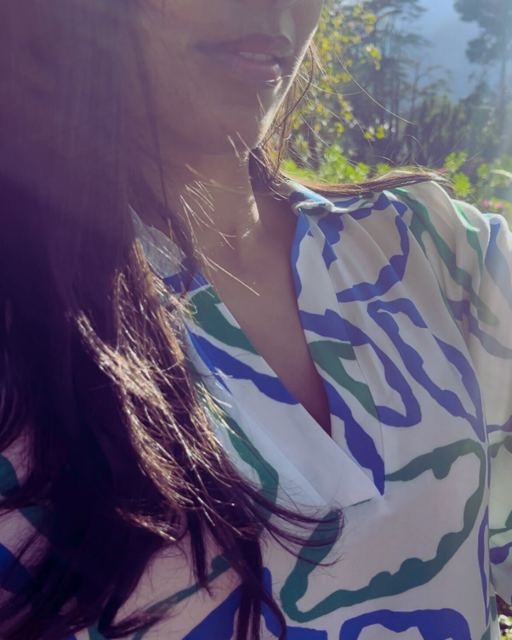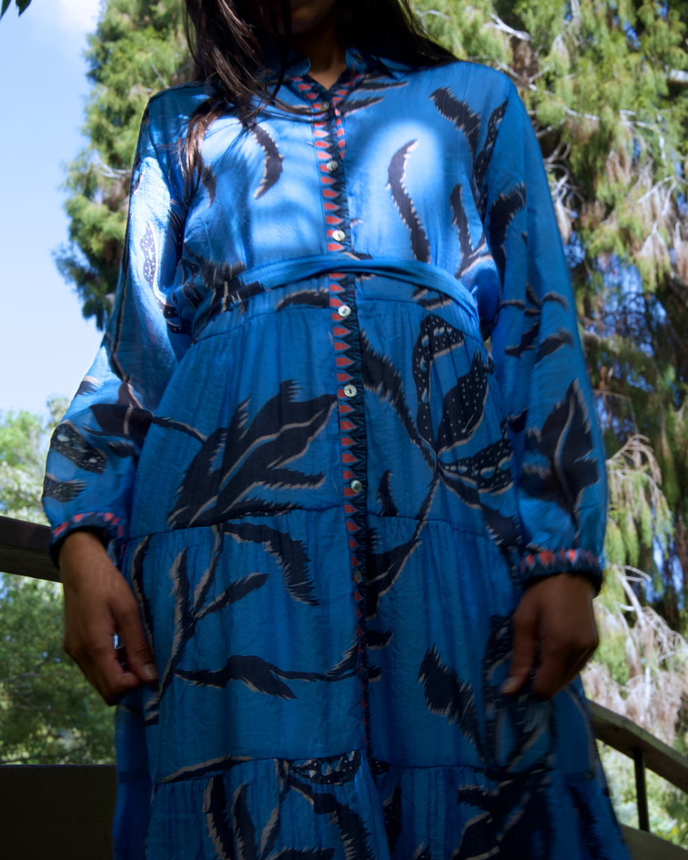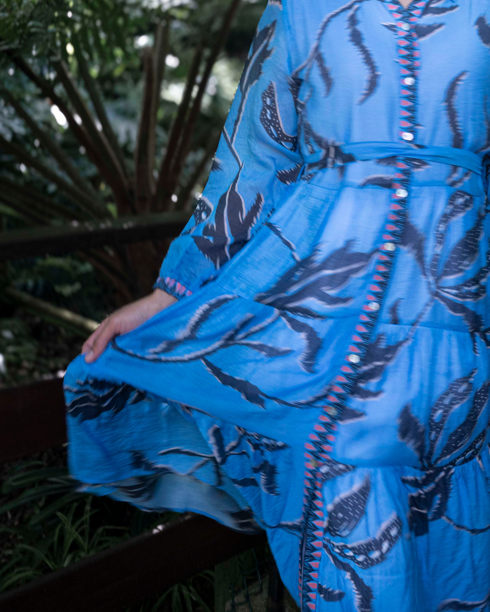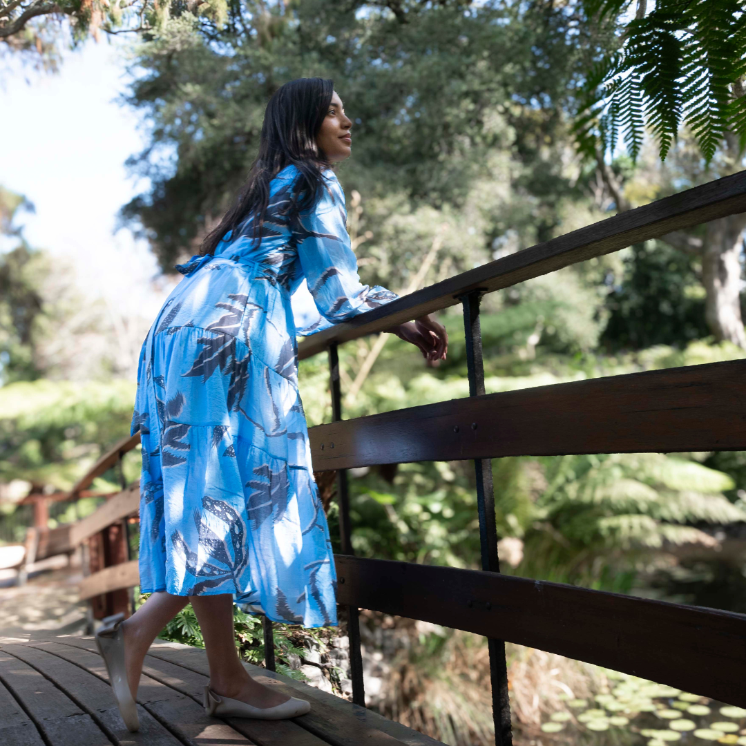 This sky blue dress dances with the breeze, singing spring’s quiet magic with every step. A garden spell is cast in the dappled sunlight.