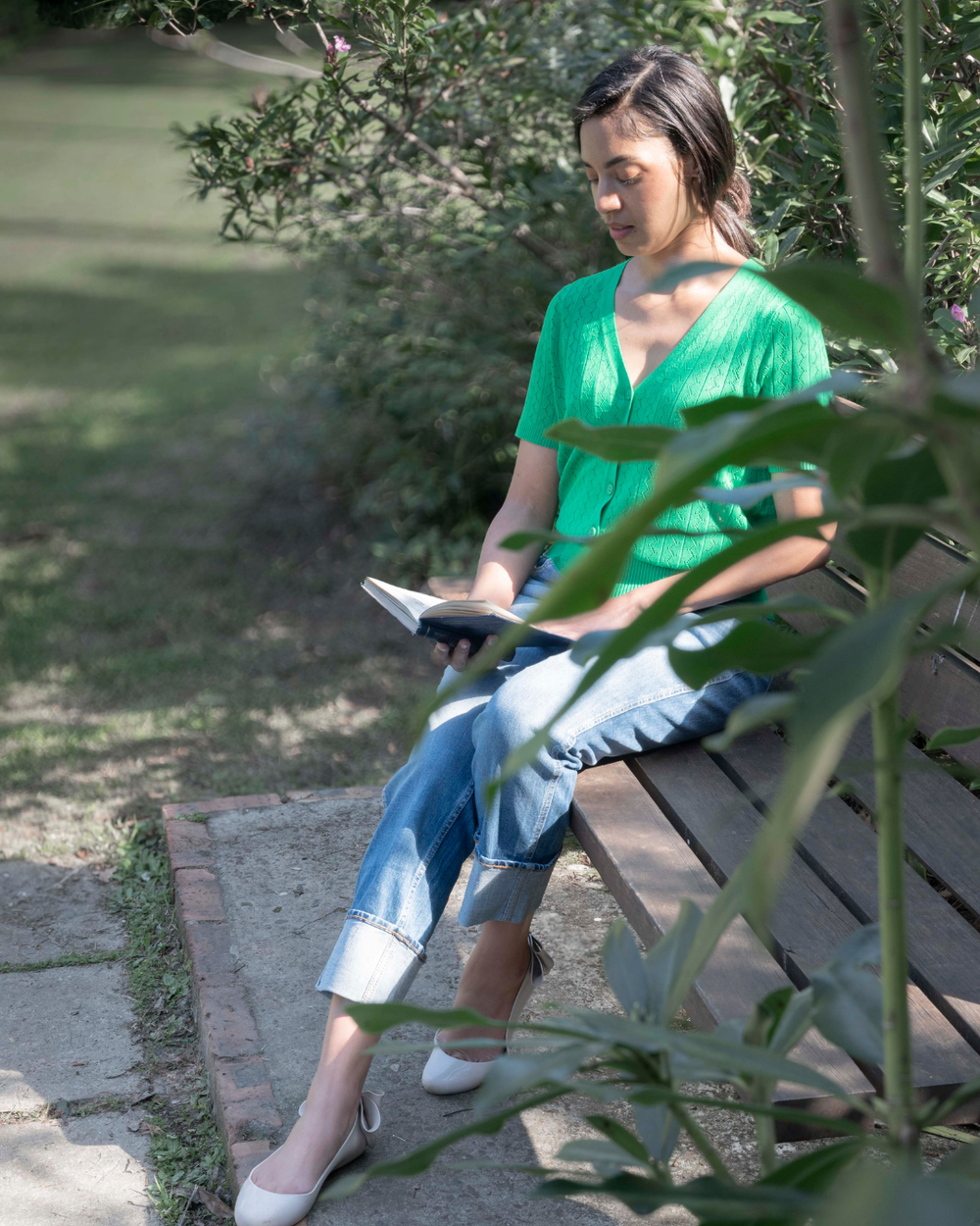Sometimes the garden spell is in a moment of stillness. A slow turn of a page, a soft knit, the rustle of the breeze in the trees, and a moment to yourself.